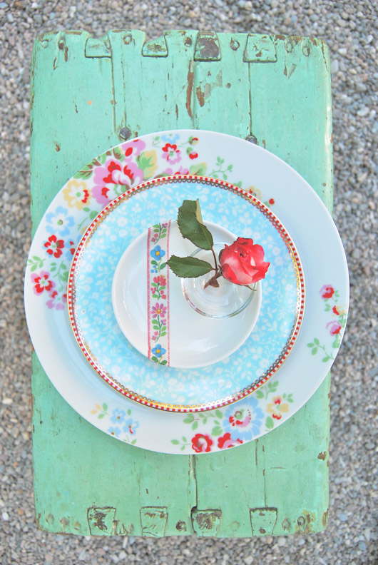 Man nehme bunte Teller, Stoffe, Webbänder, Gläser, Emaille und Papergoods.