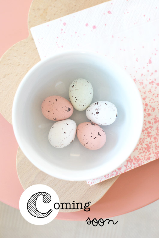 Wolkenbrettchen, Sprenkelservietten, Thermobecher, Tellerchen und Hocker