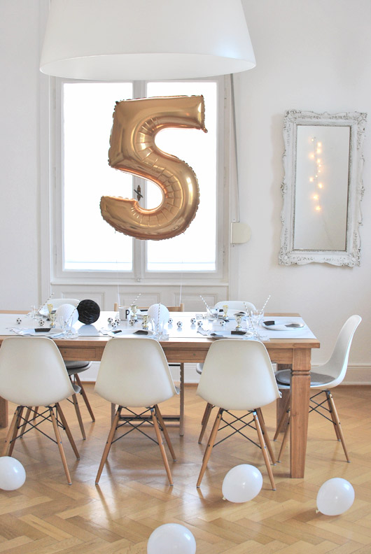 … wow, sieht das alles toll aus!!! Die 5 hatten wir auch im Januar für unseren Großen. In Rot. Hätte ich gewusst, dass es die auch in GOLD gibt…! Sieht fantastisch aus euer Esszimmer. Und alles farbharmonisch und überhaupt…toll! Ich hab auch wieder zu viel gemacht. Einiges kam gar nicht mehr zum Einsatz… da machen wir eine zweite Party draus. Im Sommer, wenn es warm ist. Winterkinder haben es ja etwas schwerer mit Outdoorparties und ob ich mir den Stress mit einer zusätzlichen Party echt auch noch antuen will… 😉 ich denke schon, dafür müssen die Gäste aber was zum Büffet beisteuern, geteilte Freude ist die beste Freude *lach* Alles, alles Gute für deinen kleinen Großen nachträglich!!! Vielen Dank für die schönen Fotos und liebste Grüße… von Meike