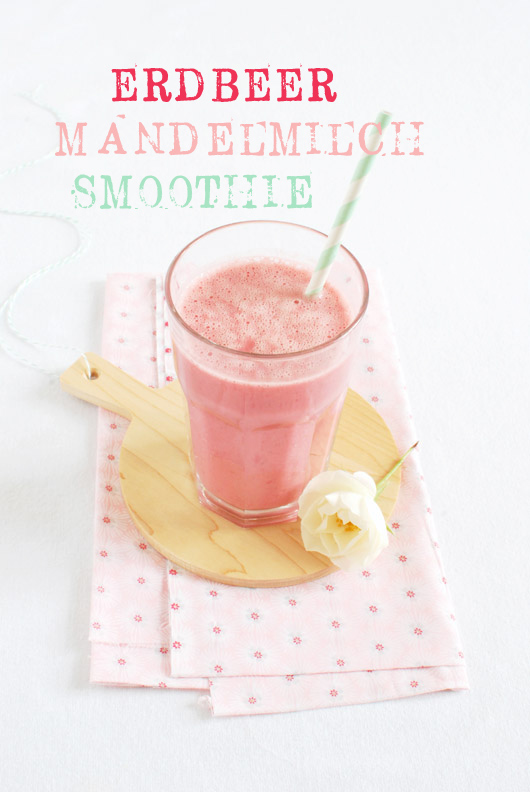 für den Smoothie Erdbeeren im Mixer pürieren, Mandelmilch zugeben bis die gewünschte Konsistenz erreicht ist und mit Mandel- oder Kokossirup süßen : )